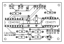 This board uses a CD40192 pre-programmable counter to latch BCD data until parallel input is invoked and a CD4071 quad 2-input OR gate to handle blanking.